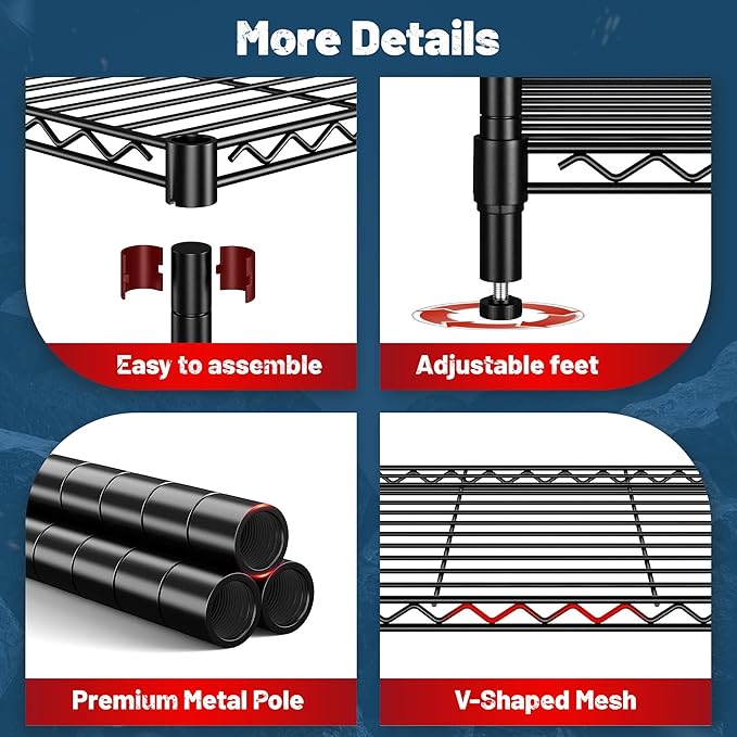 - Special Feature : 1200LBS Heavy Duty Shelving Unit, 6-Tier storage shelves, 75''H metal shelving rack, Adjustable Wire Shelving rack, Garage shelving heavy duty 1200LBS Heavy Duty Shelving Unit, 6-Tier storage shelves, 75''H metal shelving rack, Adjustable Wire Shelving rack, Garage shelving heavy duty