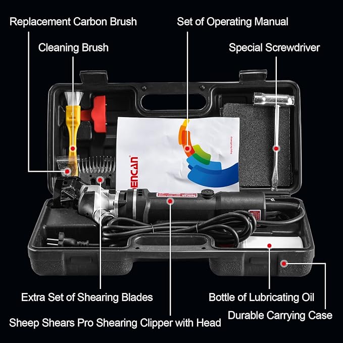 - 【PROFESSIONAL SHEEP SHEARS】: SENCAN sheep shear, a power of 750W and provides up to 2400r/min with comfortable grip protection to improve efficiency, this electric clippers makes your job of shearing much more easily and effectively