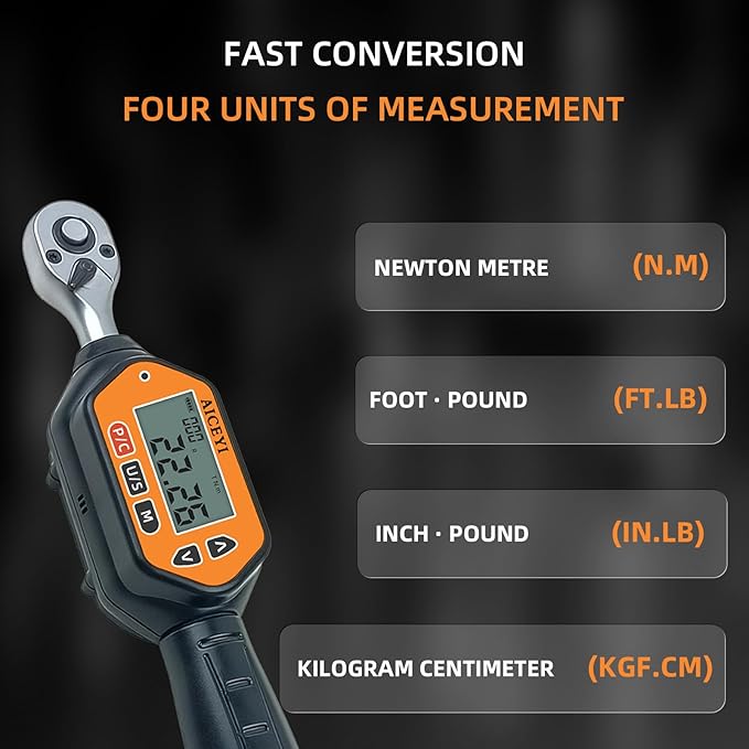 - 【Audible visual alarm】 Whether you are a professional technician or a DIY enthusiast, this digital torque spanner will meet your needs. It features a state-of-the-art digital display that emits a clear audible alarm when the torque value is reached, providing a visual cue to improve the accuracy of your work. Say goodbye to over-tightening or over-loosening and complete mechanical tasks with confidence and ease!