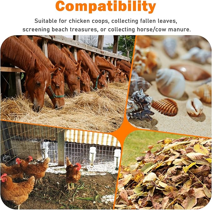 - 【Multi-purpose Farm & Outdoor Tool】Beyond chicken coops, use it for raking stalls, sifting beach treasures, or gathering horse/cattle manure. The lightweight yet sturdy design adapts to gardens, barns, and outdoor adventures.