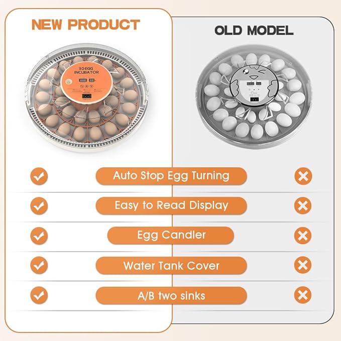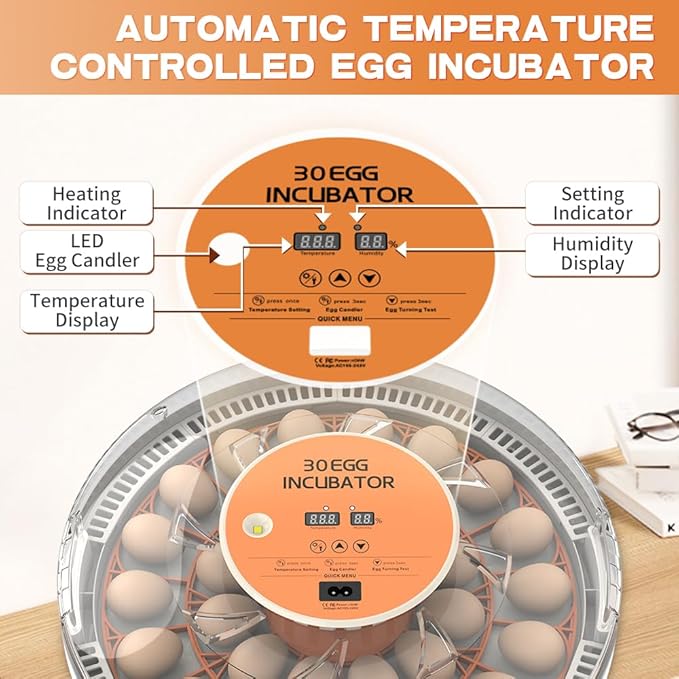 - [Spacious 30-Egg Capacity for Beginners & Experts] With room for up to 30 eggs, this incubator is perfect for hobbyists, classrooms, and small farms. The simple design makes it easy to set up, operate, and clean—ideal for all skill levels.