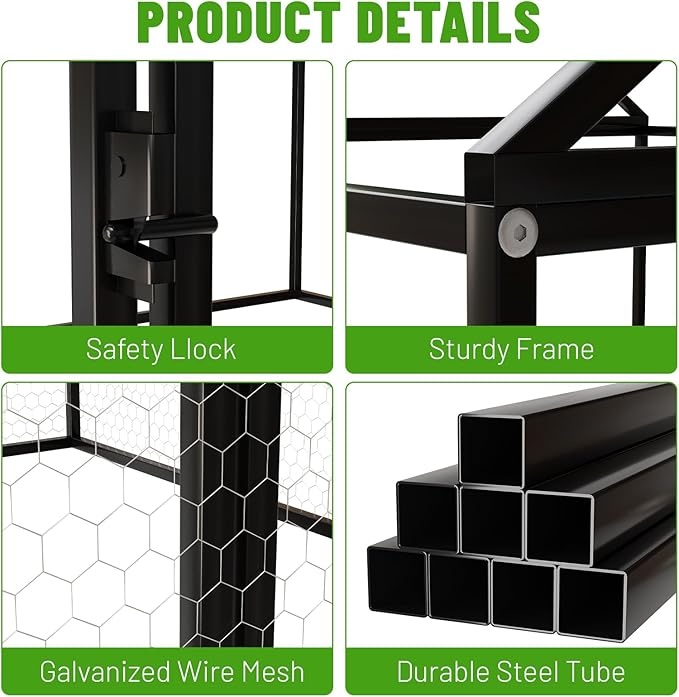 - Easy to Setup: We come with detailed installation instructions. We have optimized the way this cage is assembled and simply install it according to the instructions. Once the frame is assembled, just cover and lock the wire mesh. It comes with a plastic belt to make your installation more flexible and easier.