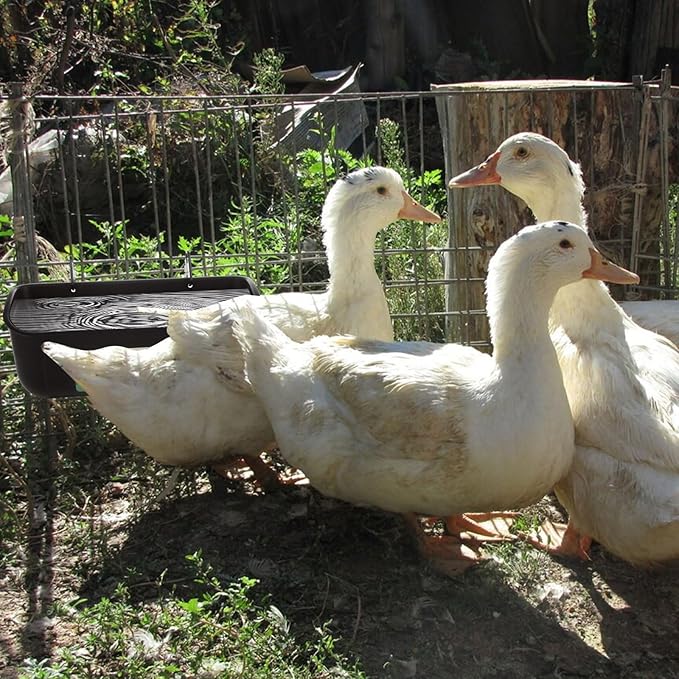 - 【Easy to Assemble】The duck feeders for outside providing various mounting solutions. You can choose clips, cable ties and screws for installation, making it possible to easily attach the feeders to metal wire mesh, or securely fix them onto fences or walls. Easily adjust the hanging height as poultry grows