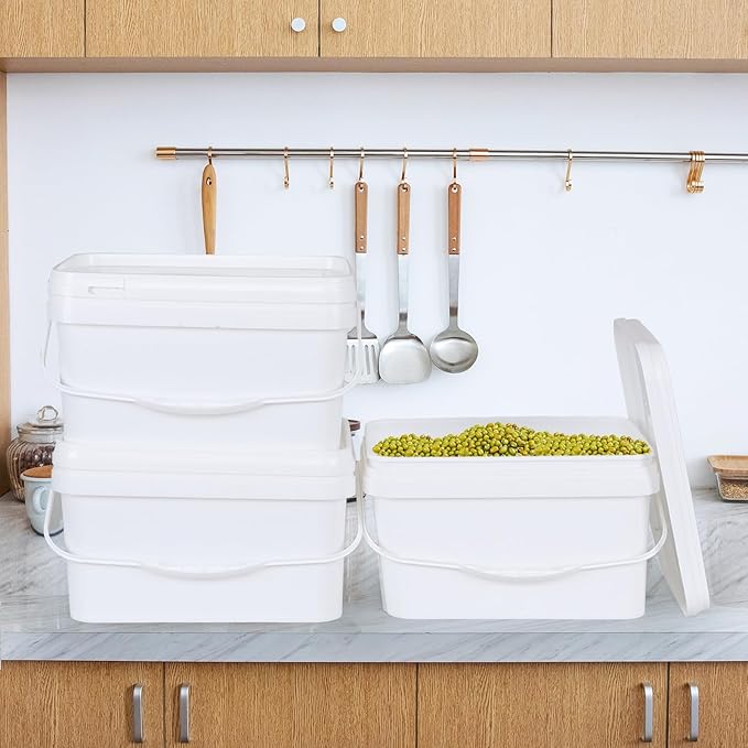 4 Packs Plastic Bucket with Airtight Lid, 3 Gallon Food Storage Bucket, White