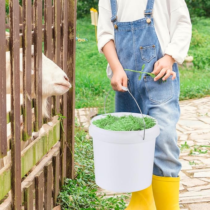 4 Gallon Plastic Food Storage Bucket with Metal Handle, Food Grade Round Pail with Lid, White, 4 Packs