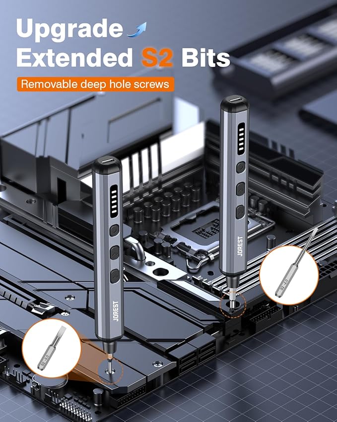 JOREST Mini Electric Screwdriver, Precision Set with 38-in-1 Magnetic Bits, Repair Tool Kit for iPhones, Laptop, Drone, Game Console, Camera, Toys; Stocking Stuffers for Men;Birthday Gift for Father