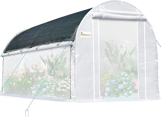 - [Styles In Seasons] - The unique whole-side screen on both sides and 8 roll-up screen windows allow for more cross-ventilation and heat & humidity control, which can be altered freely as needed, Moreover, the additional sun shade netting cover can resist strong rays, super suitable for summertime. The included sunshade net would reduce 80% of harmful light and prevent damage to plants.