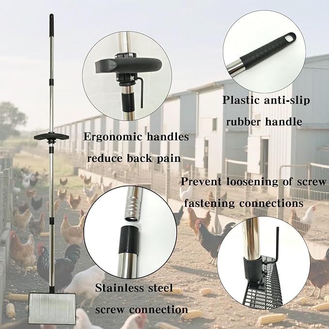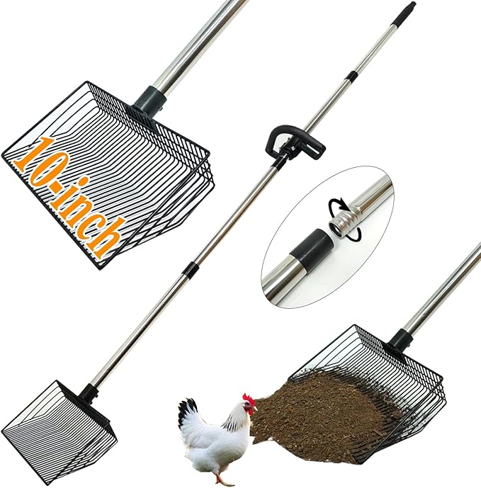 - Durable and ergonomic poop scoop perfect for chicken coop maintenance, small dog poop cleanup, or kitty litter box scooping with minimal effort.