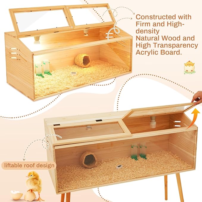 - Large enough space: Our chicken box measures approximately 40 x 16 x 16 inches, providing a spacious interactive environment for your small pets such as chicks, ducks, parrots, lizards and hamsters