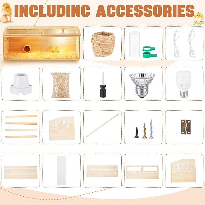 - Comprehensive accessories combination: In order to save your time and energy, we come with a variety of accessories, these include ceramic heating lamps, lighting, 2 automatic water feeders, chicken nests, litter, screwdrivers and other screw accessories, and The lamp holder and wire are connected and the door curtain of the installation part is also assembled, which is convenient for your assembly