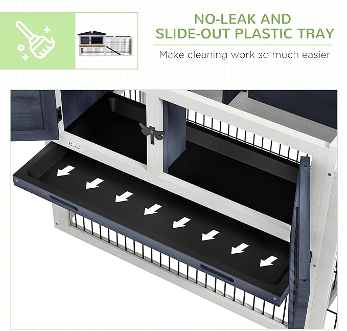 PawHut Rabbit Hutch Outdoor Indoor, 54" L Large Rabbit Cage with Waterproof Openable Roof, No-Leak Tray, Ramp, Run, for Bunnies, Guinea Pigs, Dark Gray