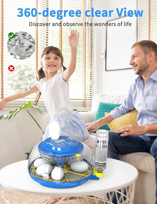 18-Egg 360° Panoramic Egg Incubator with Automatic Egg Turning and Humidity Control- Perfect for Hatching Chickens, Ducks, Quail & Other Birds (Blue)