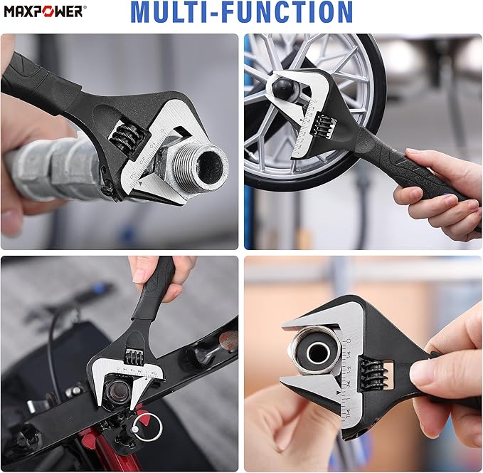 MAXPOWER 6 8 10 inch Adjustable Wrench Set, Wide Jaw Capacity 1.4" 1.6" 2" (35mm 40mm 50mm)