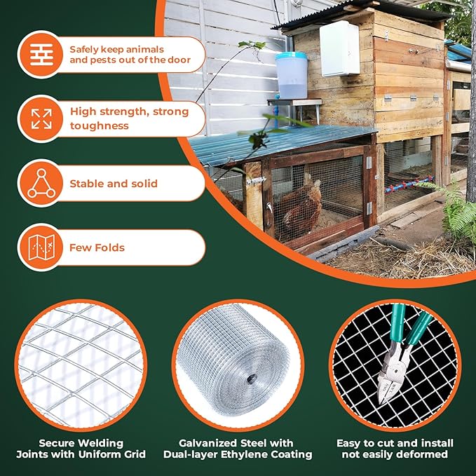 - Product Size: This product is 19ga 1/2'' 48''×100'. Please purchase the appropriate width and grid according to your needs to avoid delaying your use.