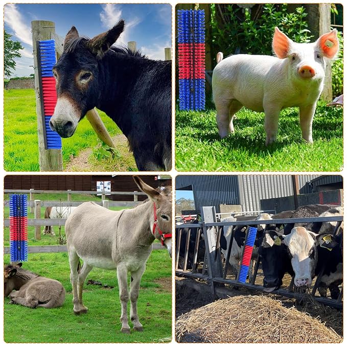 - Easy to Install: With the included screws and nuts, these livestock scratching brushes can be easily installed on stumps, fence posts, and other suitable places to prevent livestock from rubbing against valuable fences, equipment, or buildings.