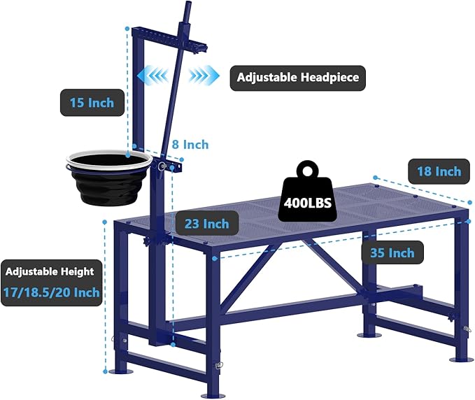 400 LBs Goat Milk Stand for Pygmy and Dwarf Goats, Goat Stand with Feed Bin, Goat Milking Stand for Sheep Trimming and Milking, Hoof Trimming Stand Adjustable Size, Iron Blue