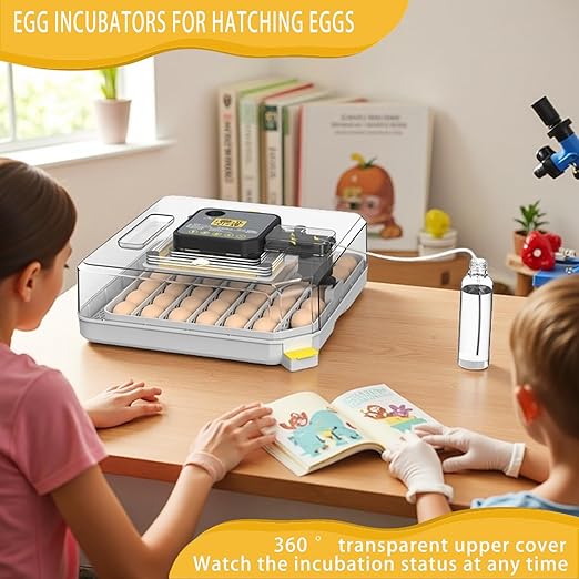 - Full-automatic efficiency: Incubators for hatching duck eggs automatic control of temperature and humidity, programmable humidity settings - chick incubator can get started without manual adjustment, just pay attention to whether there is water in the water bottle can be, quail eggs for hatching in order to improve the hatching rate is also configured with an emergency water filling port (humidity for a long time is lower than the target humidity, AB water tank can be filled manually)