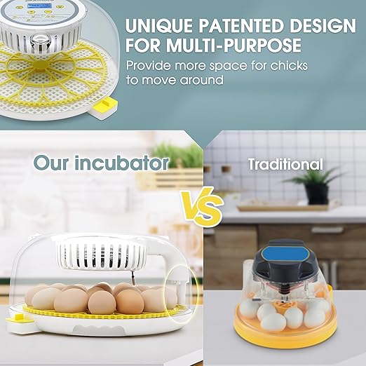 - BUILT-IN EGG CANDLER: The egg incubator with automatic egg turning.and Clear 360° Viewing - Monitor embryo development without buying separate equipment.The chicken egg incubator has a wide all-round view through the transparent window,Clear 360° Viewing - Watch the entire hatching process from all angles.