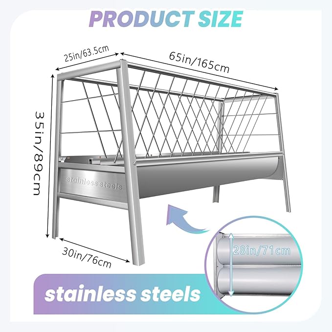 - 𝐏𝐫𝐞𝐦𝐢𝐮𝐦 𝐐𝐮𝐚𝐥𝐢𝐭𝐲 𝐌𝐚𝐭𝐞𝐫𝐢𝐚𝐥: The hay feeder is made of a durable stainless steel frame and features solid solder joints, ensuring long-lasting use. The goat hay feeder has a smooth surface and U-shaped design, making it easy to clean and maintain in any stall.