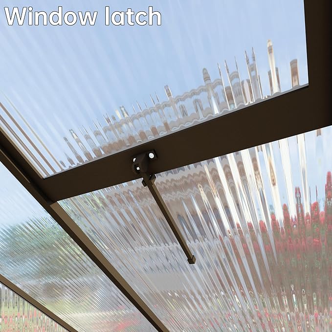 - Sturdy & Weather-Resistant Construction:Our greenhouse features a high-strength aluminum alloy frame and UV-resistant polycarbonate panels, providing exceptional durability. It withstands winds up to Beaufort scale 8 and supports a load capacity of 130 lbs/sq. ft.. The polycarbonate panels also offer high light transmission, creating the perfect environment for plant growth.