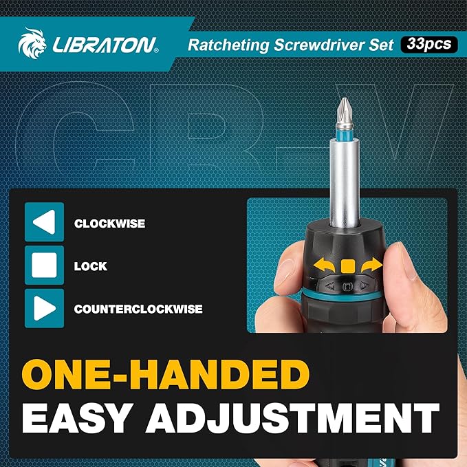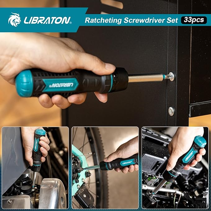 - Wide Applications: This ratchet screwdriver includes essential CR-V steel bits for everyday tasks. Designed for DIYers, mechanics, and homeowners. Repair bikes, assemble furniture, fix electronics, tighten automotive bolts, and more—all with one pro-grade tool.