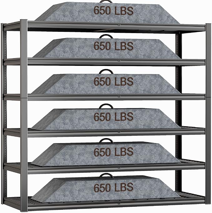 - 【Perfect for Multi-Scenario Storage】Ideal for garage shelving, workshop storage, or commercial shelving needs, this 64-inch-wide unit effortlessly organizes automotive parts, power tools, bulk supplies, or seasonal gear. Its double-layer wire decks and adjustable 6-tier design adapt to garages, warehouses, basement or shop shelves, while the 650 lbs/shelf capacity and wobble-free structure ensure safe, space-saving storage for heavy or oversized items.
