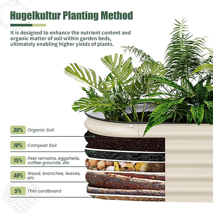 - Open Base Design:This metal raised garden bed is designed with an open base, makes this the perfect space to layer yard waste,grass clippings, fruits/veggies, or coffee grounds, to create enriched soil in your own backyard,It allow the roots absorb better nutrients, providing good drainage, and protect your plants.