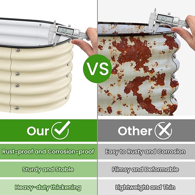 - Safety and Eco Friendly: We use USDA-approved paint that is 100% safe and eco friendly,so you can use our products with peace of mind.Plus,Our garden bed features an oval design that eliminates sharp corners and is covered with heavy-duty rubber edging to prevent injuries.