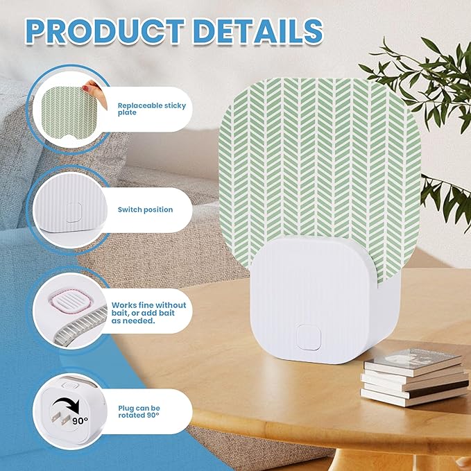 - Convenient flying insect trap: We use replaceable sticky plate indoor fly trap, carry 3 replaceable sticky plates, you don't need to clean, and the sticky card faces the wall, the stuck insects can be well hidden.