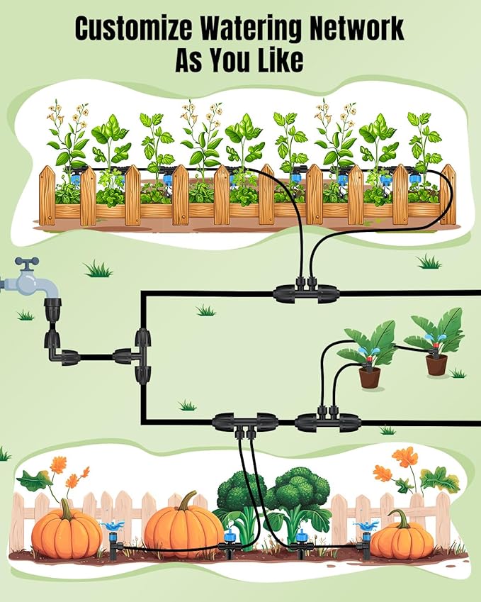 - Wide Application: Ideal drip irrigation parts for creating branch lines in any planting zone, including raised beds, vegetable gardens, greenhouses, patios, lawns, and more. Effortlessly bring life to every corner of your space