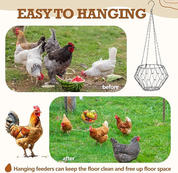 - Rust-proof Material: made of quality material, surface electroplating, with painted hanging chains, this chicken toys for coop resists rust, corrosion, and deformation; Easy to clean and durable for long-term use, ensuring a hygienic feeding solution for your poultry