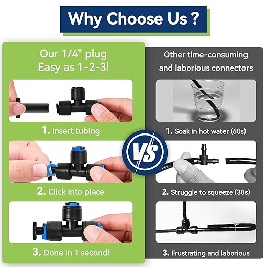 20 Pack 1/4" End Plugs for Drip Irrigation Tee Connectors, Quick Connect Universal Drip Irrigation Tubing Coupling Valve, Connector Locking Fitting for Sprinkler or Drip Irrigation System