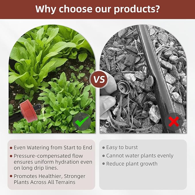 - Built to Last: Our 1 GPH Pressure Compensating Spot Watering Drippers/Emitters are made from premium UV-resistant plastic to withstand heat, sun, and outdoor weather. Designed for year-round performance, it won't crack, age or leak - ensuring reliable drip irrigation every season.