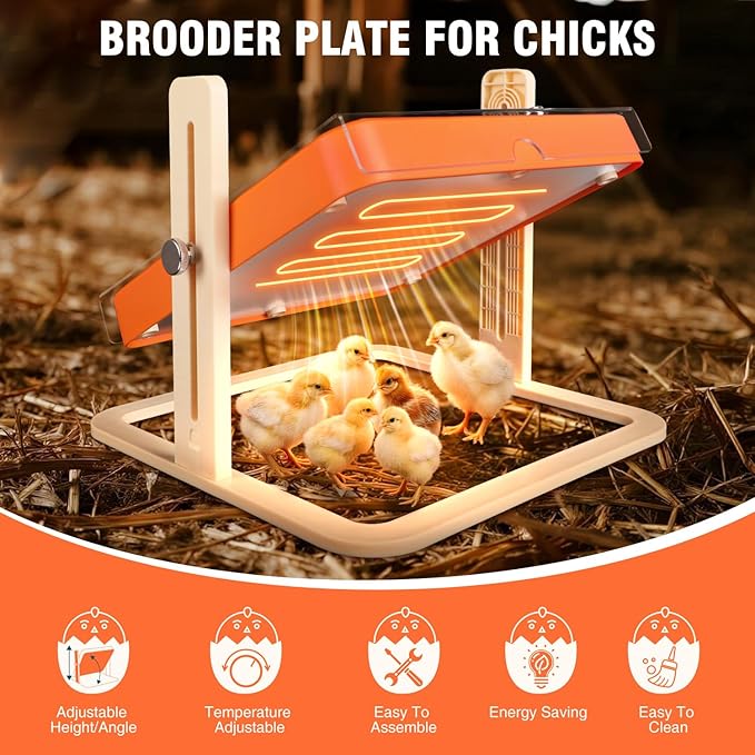 - CHICKEN COOP HEATER - This chicken brooder boasts a quick heat-up design, rapidly reaching the optimal temperature for young chicks to cut down on waiting time. With adjustable temperature, you can precisely control the heat based on the chicks’ age and needs, creating a stable, comfortable environment to support their healthy growth. Our brooder heat plate includes an instruction manual for hassle-free use.
