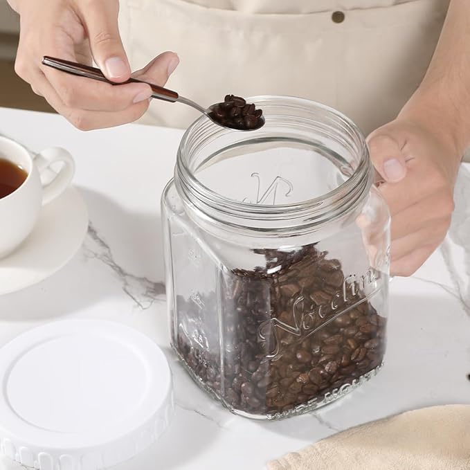 - Easy to Clean:The wide-mouthed bottle design makes cleaning extremely simple, with no blind spots. The smooth glass surface is less likely to retain odors. The flat lid and bottom design of the cans allow for stable and safe storage, helping you maximize the vertical space of cabinets, pantry cabinets or shelves, and achieve efficient kitchen organization.