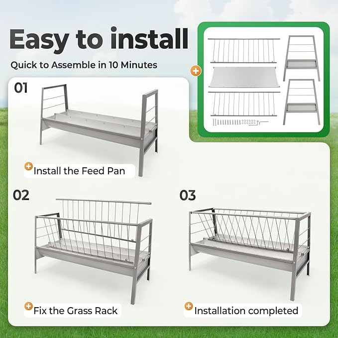 - Package Includes: 1 x Powder Coated Silvery Livestock Feeder; All necessary assembly hardware & instructions