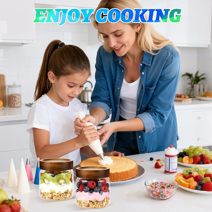 - 【WIDE APPLICATIONS】 Glass kitchen canisters for pantry organization and storage are suitable for storing various dried ingredients to retain their freshness, with clear glass jars, you can easily see inside and quickly find the ingredients you need.Glass jars with wood lids perfect for storing dry food , such as,cookies,dried beans,pepper,oatmeal,jams,chutneys, rice, flour, tea, coffee, biscuits, candy,cheese,flour, sugar, seeds,etc. Keep your kitchen tidy and safe,saving space and convenient .
