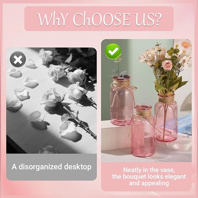 - Bulk Set for Versatile Decor: 6 pack pink glass vases for centerpieces is perfect for those needing multiple vessels to elevate their spaces. Whether arranging floral displays for events or sprucing up multiple rooms at home, these vases offer consistent quality and style, ensuring you have enough to create cohesive and eye-catching setups