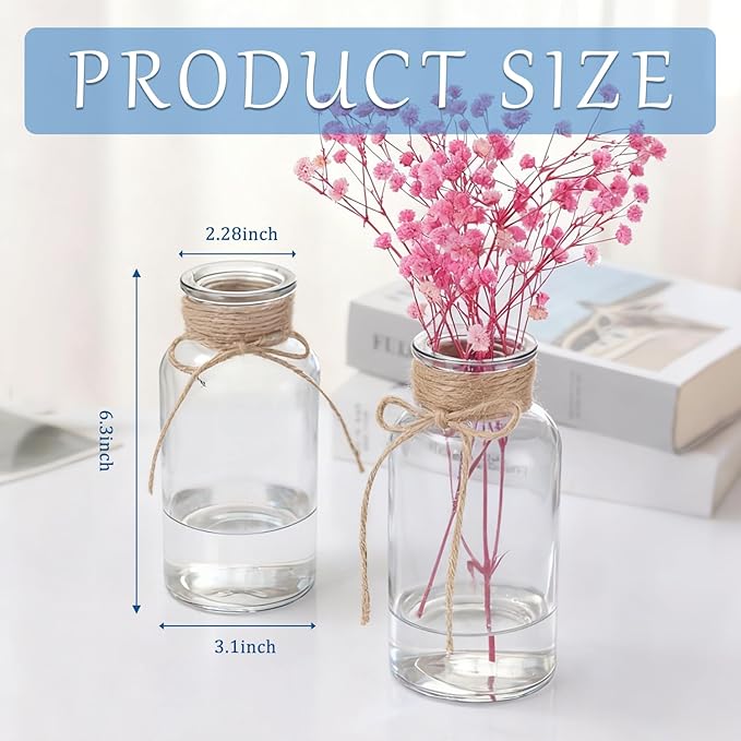 - Perfect Dimensions for Flowers: Each vase features a 2.28in opening, 6.3in height, and 3.1in base—ideal proportions for small vases for flowers. The well-sized opening easily accommodates small bouquets, single stems, or even dried arrangements, while the stable base ensures secure placement on any surface.