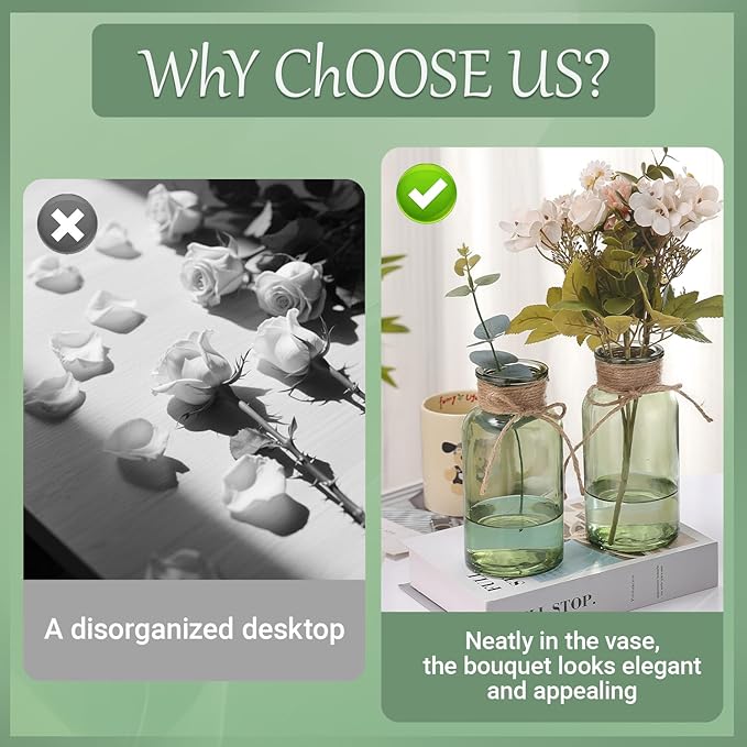 - Bulk Set for Versatile Decor: 12 pack green glass vases for centerpieces is perfect for those needing multiple vessels to elevate their spaces. Whether arranging floral displays for events or sprucing up multiple rooms at home, these vases offer consistent quality and style, ensuring you have enough to create cohesive and eye-catching setups