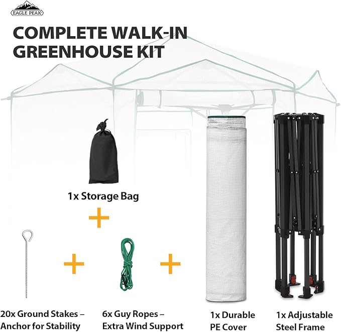 - EASY SETUP: This pop up greenhouse with patented center lock technology supports one person setup in seconds. The pre-assembled frame and innovative Peak Push locking system delivers a quick setup. No tools required. Whether you're a seasoned gardener or just starting out, the EAGLE PEAK pop-up greenhouse for outdoors saves you time and hassle