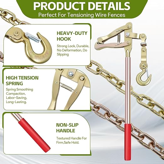 Heavy-Duty Chain Link Fence Stretcher Tool,with 19.7FT Chain-2200lbs Fence Stretcher Tensioner, Fence Tensioner and Repair Tool for Barbed Wire, Farm Fencing, Ranch, and Fence Repair
