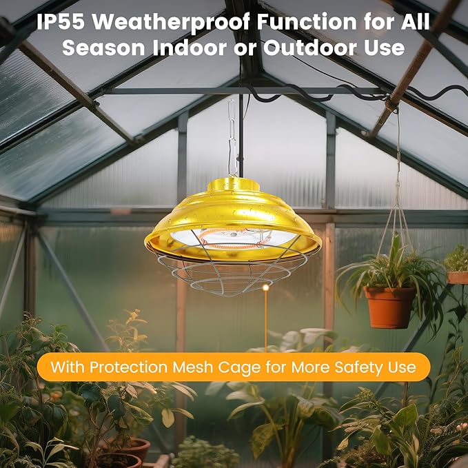 - Waterproof Poultry Heater: Waterproof feature gives you peace of mind for your poultry space heating. The whole heater body and switch is waterproofed.