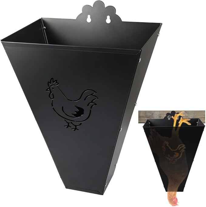 - ✔ Superior Secure Restraint & Unique Design: Features a precision-engineered funnel shape with a folded edge for stability, plus a comb-shaped top hook for optimal wall mounting and a distinctive Pierced Rooster Design; Ensures easy placement, secure holding to minimize flapping and blood splatter, and enhances visual identity.