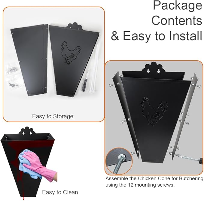 - ✔ Heavy-Duty & Weather-Resistant Iron Build: Constructed from robust iron with a protective black powder coating, Kalekey Chicken Cone resists rust and enduring harsh farm or processing environments.