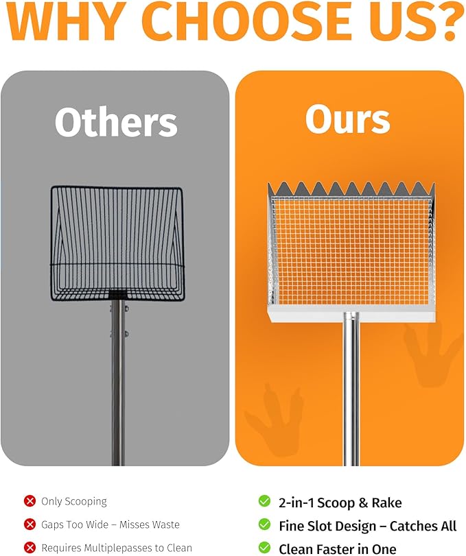 - DURABLE STAINLESS STEEL BUILD: Premium stainless steel makes this poop scooper ultra-strong, rust-resistant, and built to last—unlike flimsy plastic tools that bend or break under pressure. It’s a solid, reliable chicken-run cleaning tool trusted by backyard chicken owners, farmers, and pet lovers