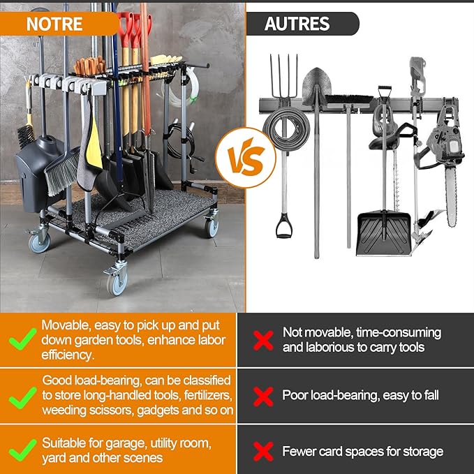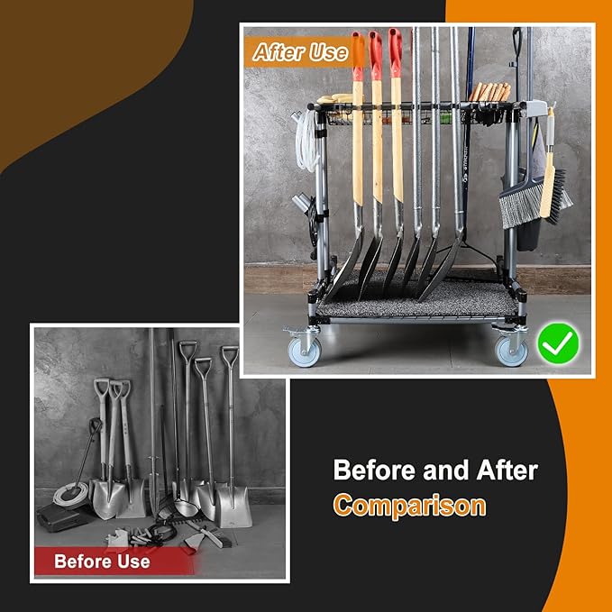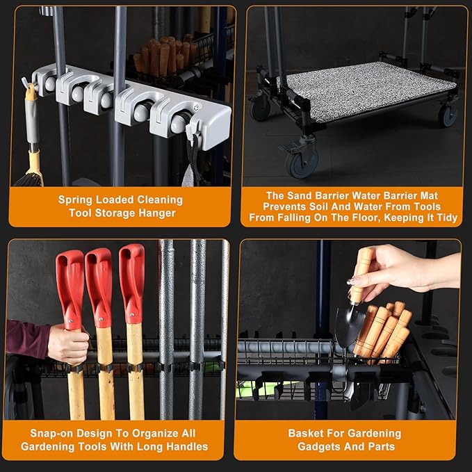- 【Versatile Tool Storage】Organizes various gardening tools like shovels, rakes, shears, and watering cans, keeping them neat and easily accessible