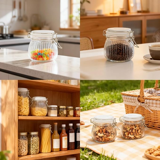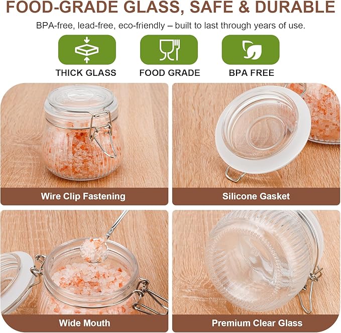 17oz Airtight Glass Jars with Lids, Small Food Storage Container Set of 6, Wire Clip Canisters Mason Jars for Canning Pickling Spice Herb