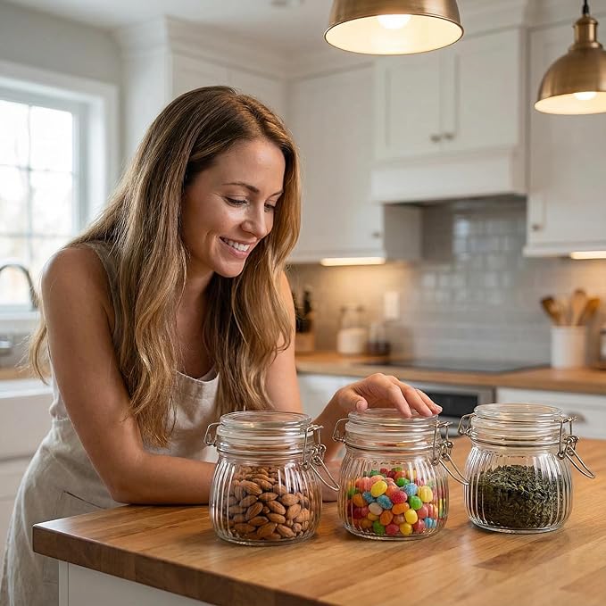 - Generous 17oz Capacity – Larger glass jars & containers suitable for bulk storage.