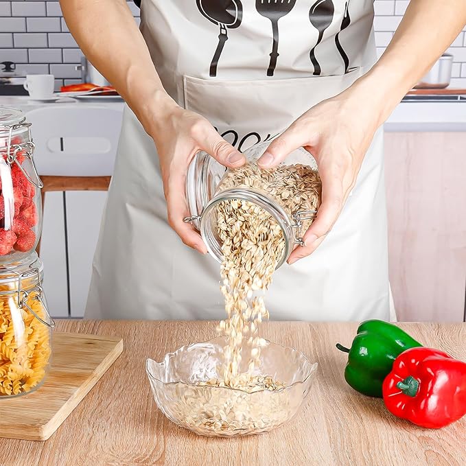 25oz Airtight Glass Jars with Lids, Set of 6 Food Storage Containers & Canisters, Clear Mason Jars with Clamp Seal for Canning, Cereal, Coffee, Pasta, Sugar, Beans & Spices